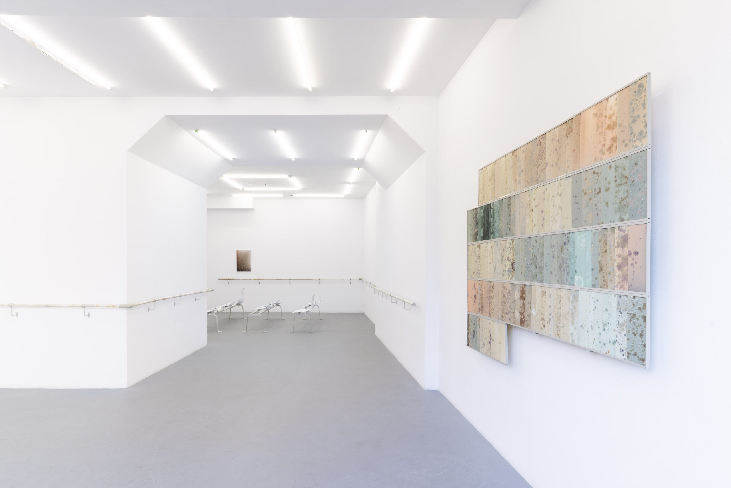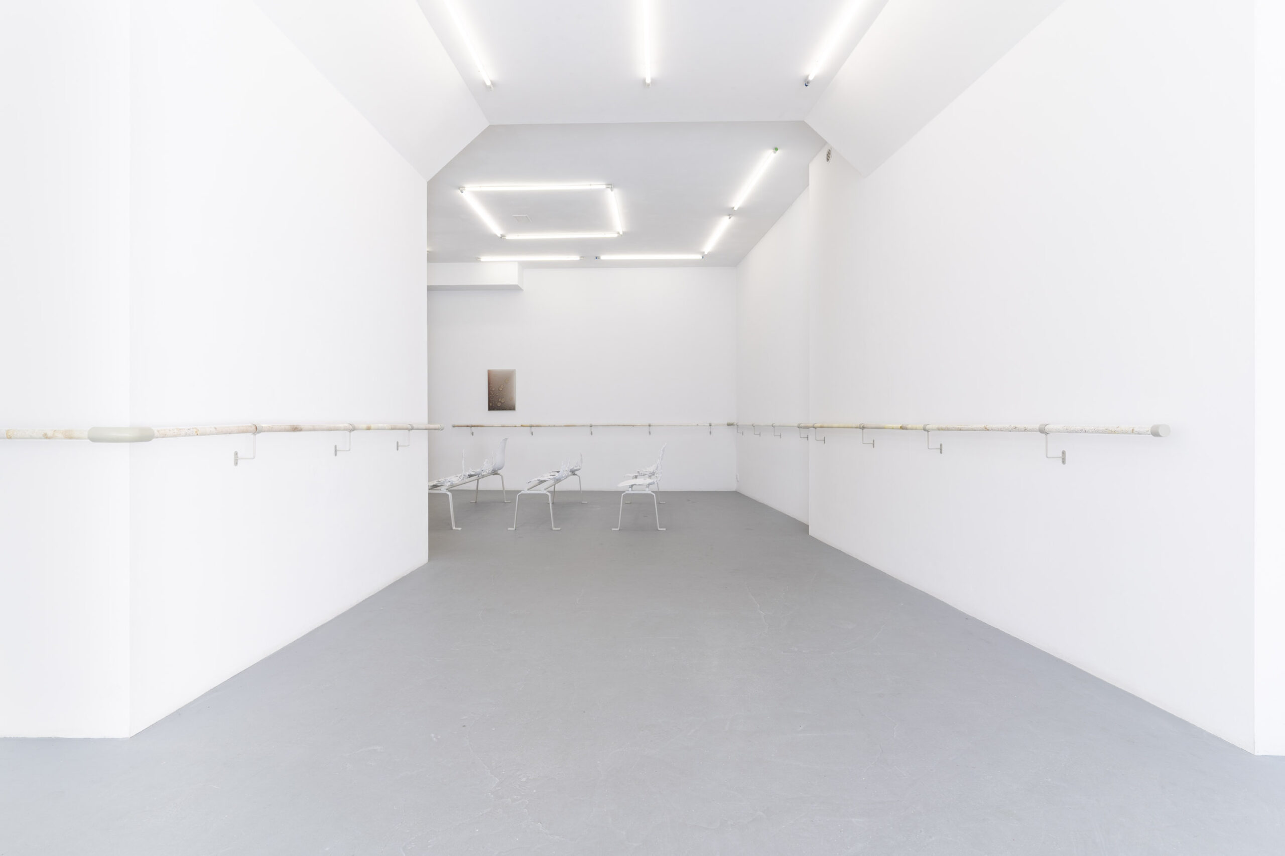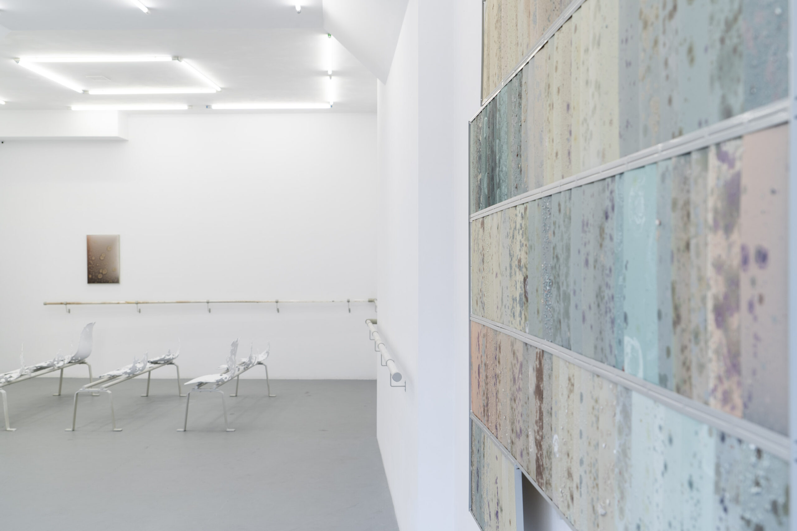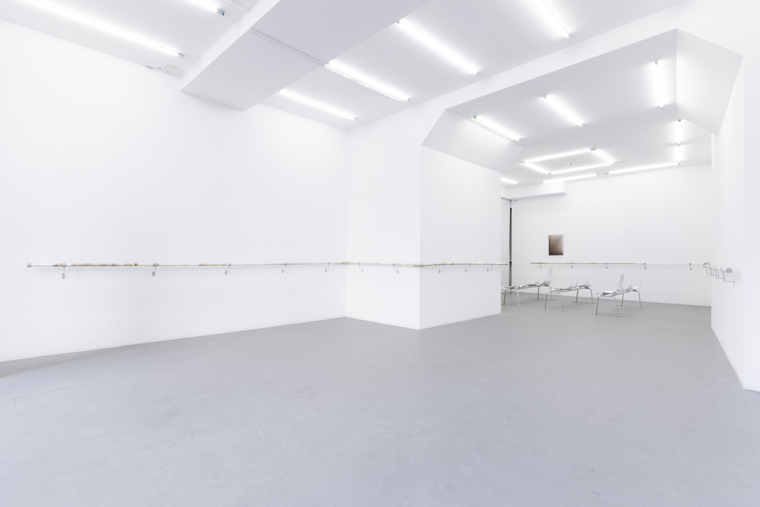 Wystawa Adolfo Bimera jest niezwykle osobista .Wieloletnie doświadczenia związane z towarzyszeniem chorej matce w instytucjach medycznych uczyniły z takich miejsc codzienność i naturalny punkt wyjścia do tworzenia sztuki, która pozwala oswoić rzeczywistość.Osobisty wymiar wystawy może stać się również naszym doświadczeniem. Z pozoru sterylna przestrzeń kusi swoją zagadkowością, a poszczególne prace umożliwiają ciału odnalezienie się w niej i odkrycie własnej cielesności. Rozciągnięta wokoło poręcz daje metaforyczne i fizyczne oparcie, prowadząc w głąb– a poczekalniane krzesełka pozwalają na poczucie zlewania i stapiania się z ciałem. Zmysły odnajdują znane faktury i materiały – fizyczne, bliskie, intymne.